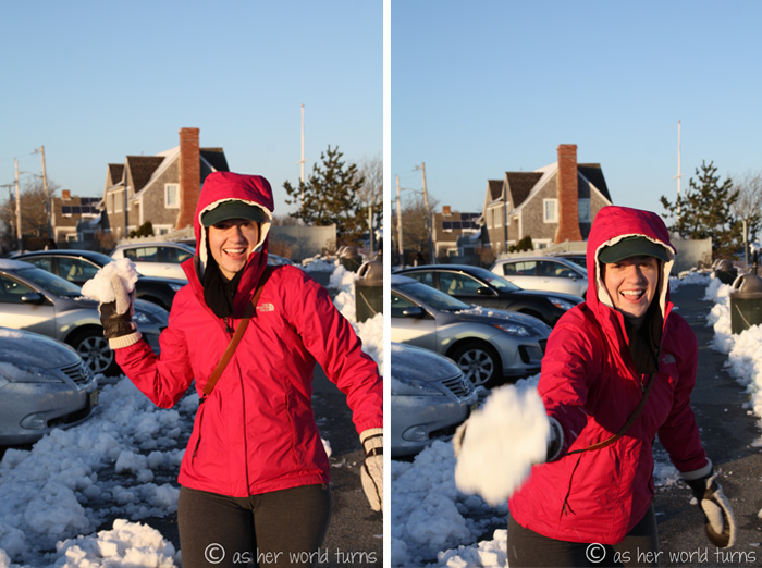 My goofy sister thought it’d be fun to throw snowballs at me. Each progressive snowball grew comically larger in size.