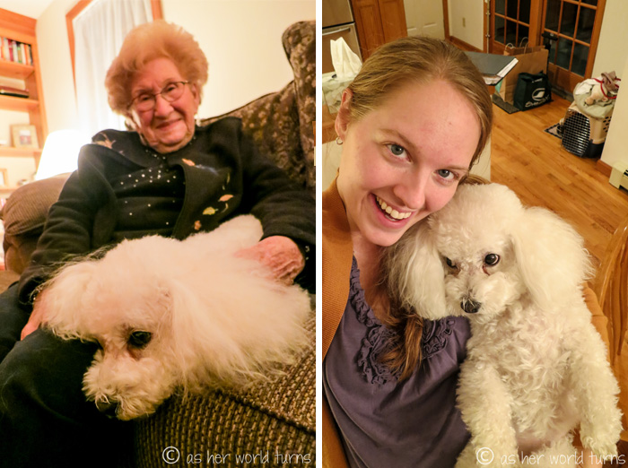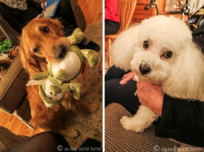 That night we enjoyed dinner with longtime family friends Diane and Clay, and their golden retriever Meadow.